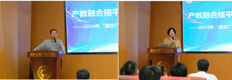 同时学校健康学院院长雷毅雄和中医药学院副院长张志勇先后在会上代表医学和医药类相关专业毕业班学生,感谢前海人寿广州总医院和增城区人力资源和社会保障局就业服务中心多年来对学院毕业班学生实习就业岗位的招聘和帮扶,使相关专业毕业班学生有了更多到增城区大医院实习就业的机会。