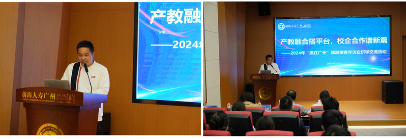 2024年12月3日下午,我校联合前海人寿广州总医院和广州市增城区人力资源和社会保障局在前海人寿广州总医院门诊一楼阶梯会议室共同举行了主题为“产教融合搭平台,校企合作谱新篇——2024年“赢在广州”穗港澳青年访企研学交流活动”。