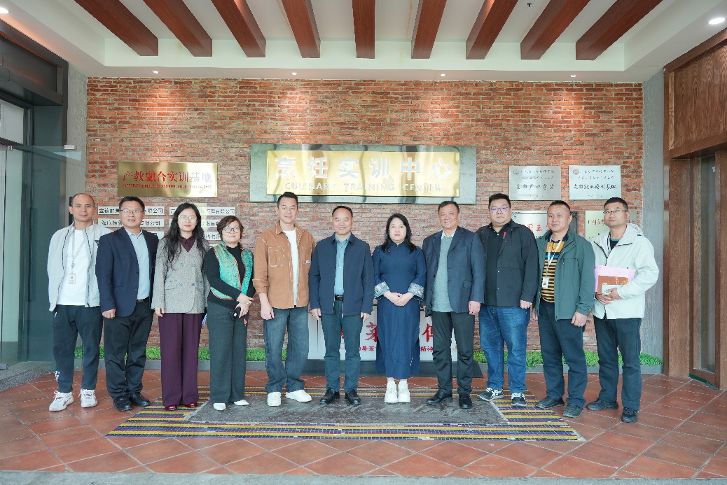 随后,嘉宾们在学校领导陪同下,参观了校园及烹饪实训中心,深入了解学校的教学环境与实践条件。参观过程中,嘉宾们对学校的实训设备、教学理念、学生课堂氛围给予高度评价。参观结束后,全体参会嘉宾与领导合影留念,为本次调研交流会画上圆满句号。