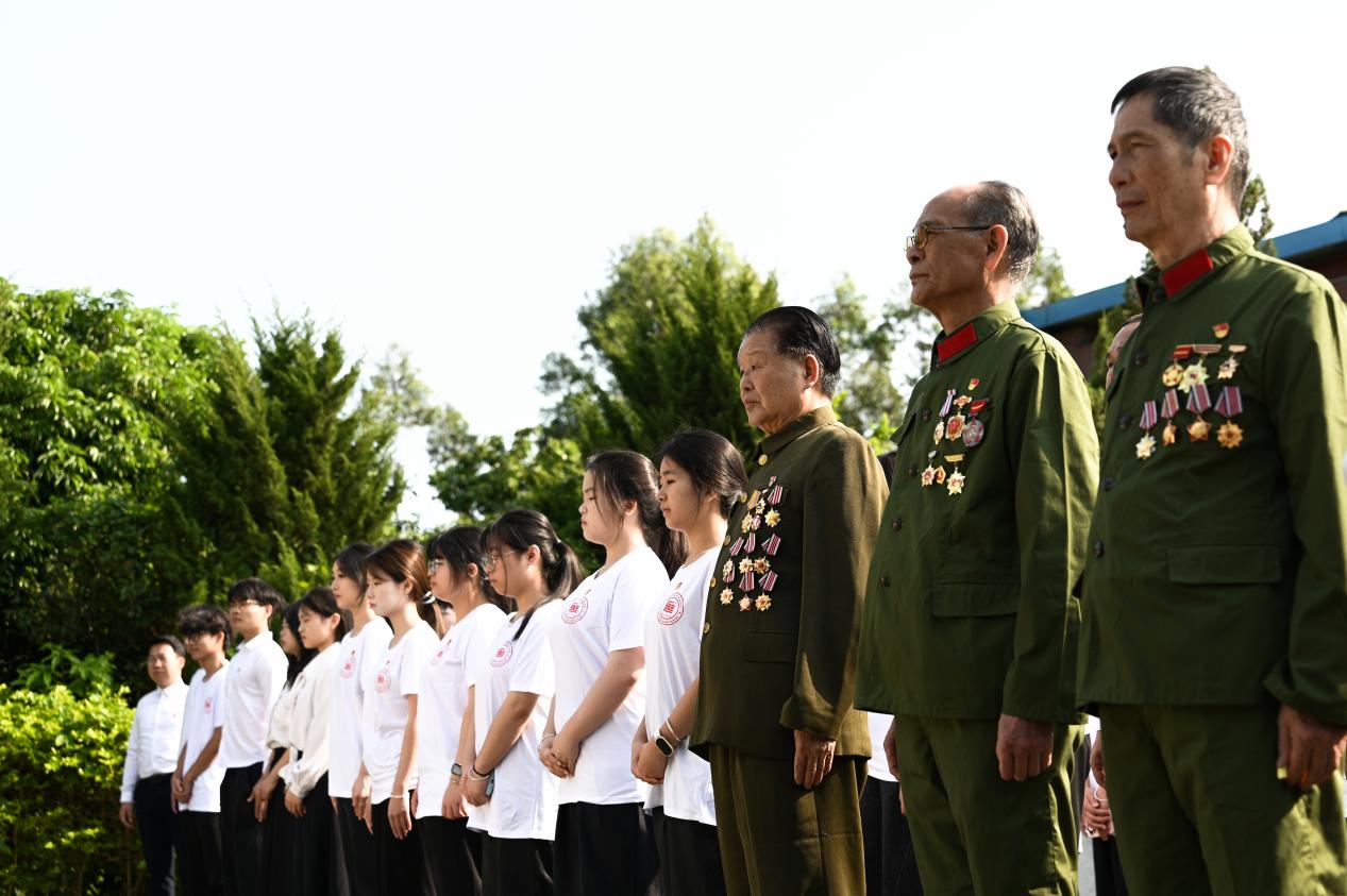 祭扫仪式结束后,校关工委特邀对越自卫反击战二等功荣立者、“全军英雄模范代表”、增城区关工委常务副主任兼英模报告团团长顾海城老师,与青马班学员们开展交流座谈。顾海城老师结合自身战斗经历,勉励青年学子珍惜时光、勤学奋进,将爱国情怀转化为实干担当。师生还一同参观大埔围村纪念馆,通过史料与实物直观感悟红色历史,深化对增城革命传统的认知。