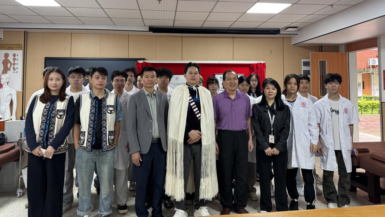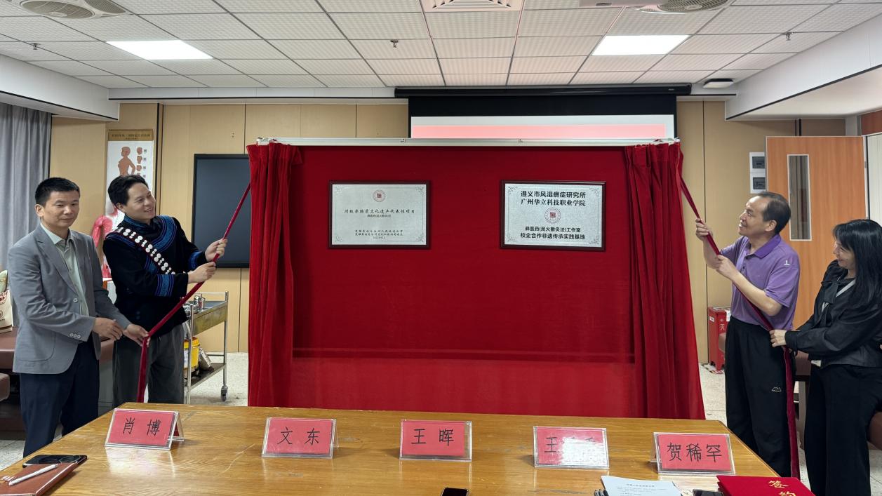 为推动非物质文化遗产融入校园教育,传承与弘扬彝医药传统技艺,2026年4月24日上午9:30,我校彝医药(泥火敷灸法)非遗工作室揭牌仪式在西2教学楼104室顺利举行。本次活动以“传承非遗文脉,赋能文化新生”为主题,中医药学院院长王晖、副院长王泽秀、活态非遗彝医传承人文东、遵义市风湿痹症研究所副所长肖博及师生代表共同参与。