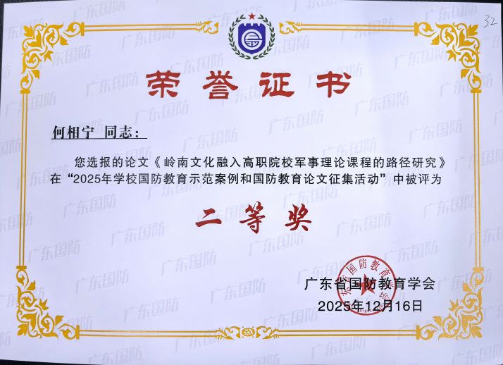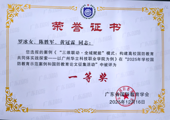 广州华立科技职业学院在省国防教育案例与论文评选中喜获佳绩
