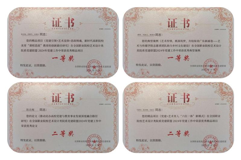 喜报︱我校在全国职业院校艺术设计类院系党建联盟2024年党建工作评选中喜获一等奖2项、二等奖2项、三等奖3项