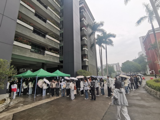 考试当日,候考广场秩序井然,考生在考务工作人员的引导下有序完成身份核验及个人物品存放,规范进入考场。广东省教育考试院委派的监察员、副校长陈显强、校长助理李鹏、教务处处长孙丽英、教务处处长助理刁镜林等领导深入考场进行巡视。