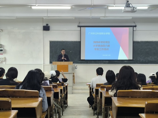 12月13日,2025年下半年全国大学生英语四六级考试(笔试)在广州华立科技职业学院广州校区考点顺利举行。本次考试学校共设四级考场40个,共1197名考生参加考试;六级考场一个,共28名考生参加考试。