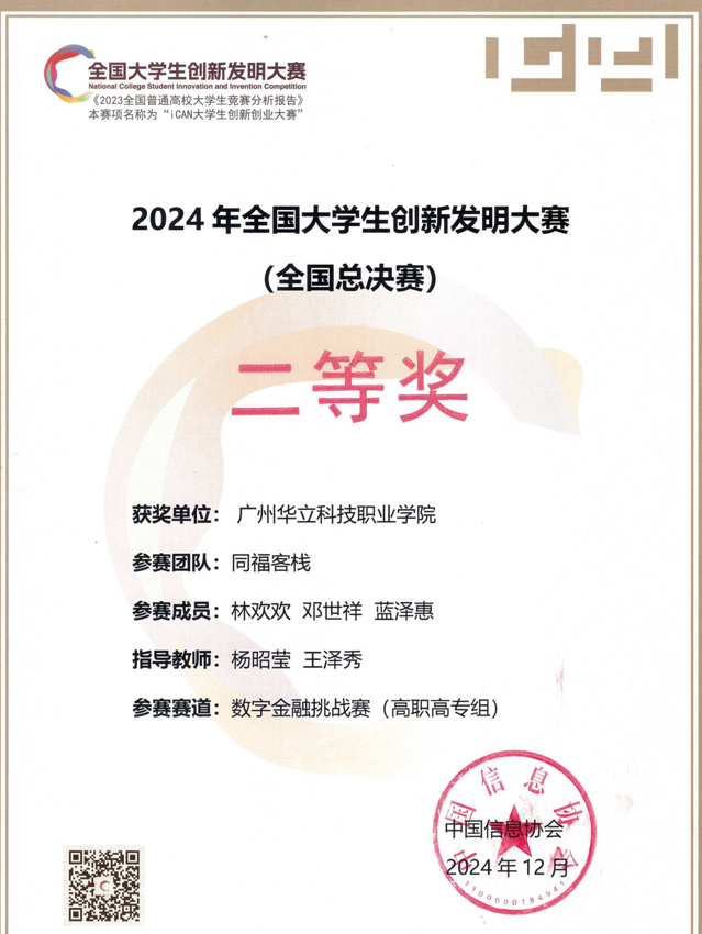 全国大学生创新发明大赛全国总决赛(二等奖)