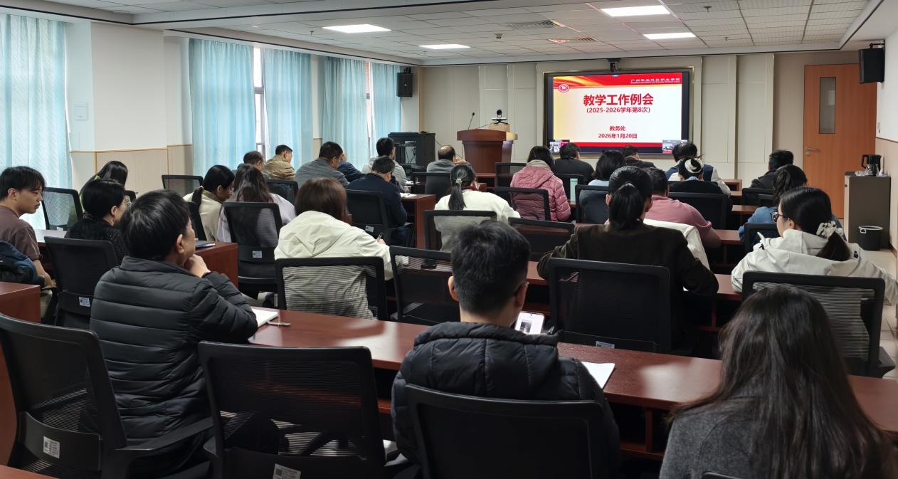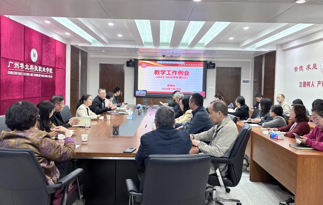 2026年1月20日下午,2025-2026学年第八次教学工作例会在行政楼 305 会议室召开,会议由陈显强副校长主持,两校区教务处、实训中心、教学督导办、各二级学院负责人、教科研主任及相关人员参加会议,会议围绕多项教学核心工作作出部署,精准落实高职教育改革方向与技能型人才培养目标。