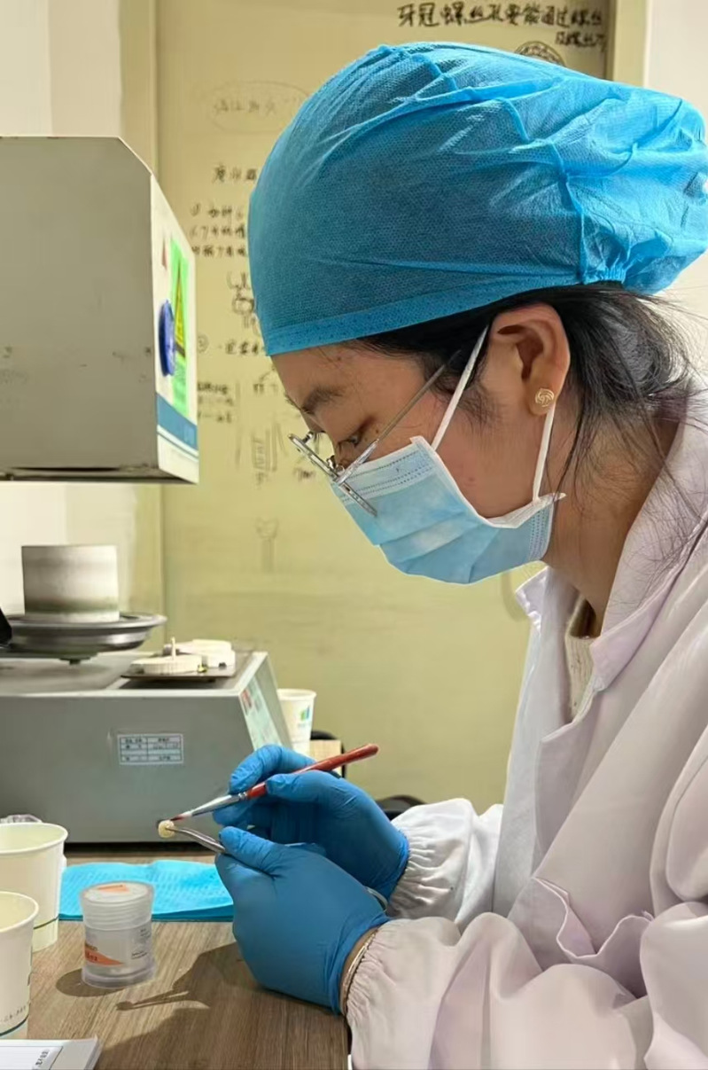 紧急任务处理:2025年国庆前夕,科室接诊一名因车祸导致前牙三度松动的高三学生,需即刻修复以避免影响高考报名照片拍摄。祝英姿主动留守加班,连续工作10小时完成纤维桩核+全瓷冠修复,并加班制作临时保护套,患者次日顺利完成证件照拍摄,家长致信医院“感谢祝技师让孩子的人生关键节点不留遗憾”。