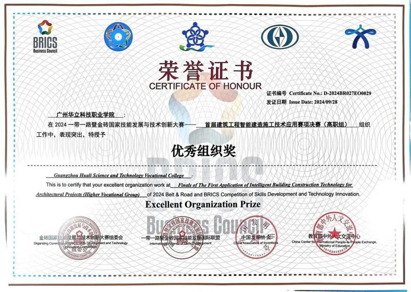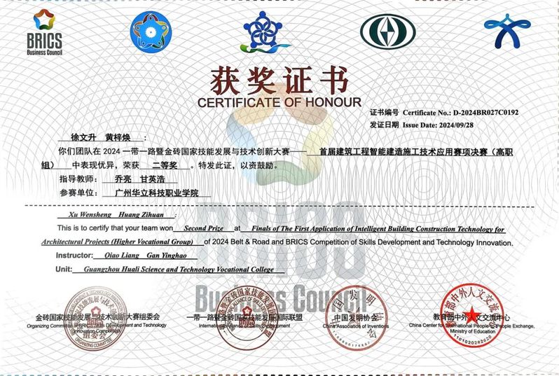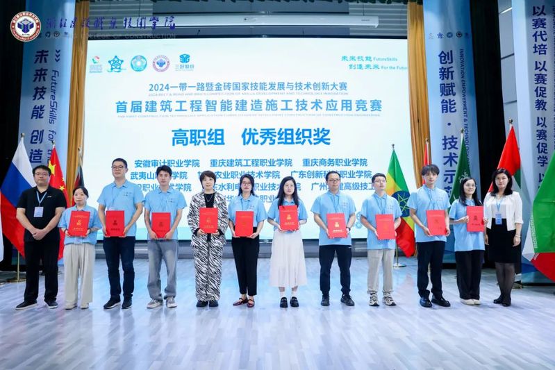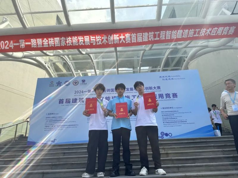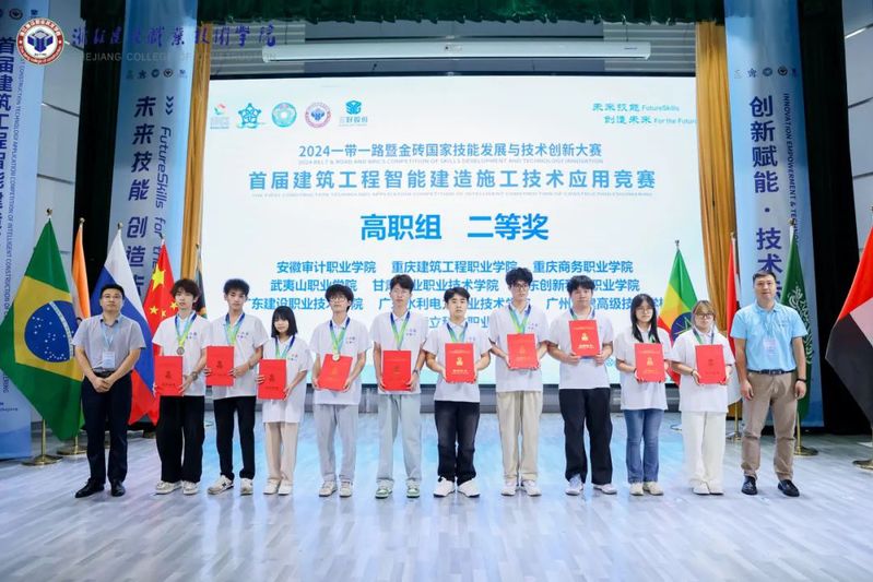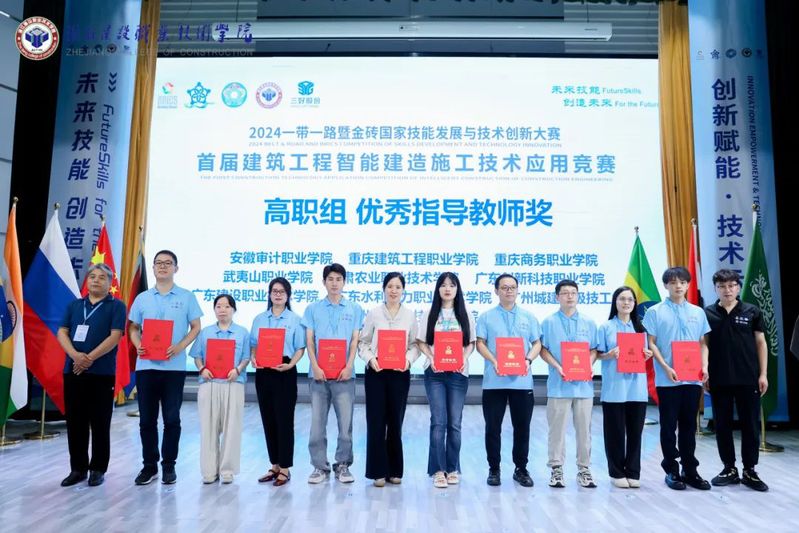 近日,2024一带一路暨金砖国家技能发展与技术创新大赛首届建筑工程智能建造施工技术应用赛项(BRICS-ST-027)全国总决赛在浙江杭州举办。本次决赛汇聚了来自全国28个地区382所院校的415支队伍,共计1500余名优秀选手参赛。其中孟加拉国、加纳共和国及马来西亚的6名国际留学生也参与其中。经过激烈角逐,我校城建学院学生徐文生、黄梓焕脱颖而出,荣获全国二等奖的佳绩,指导教师乔亮、甘英浩被授予“优秀指导教师”荣誉称号,此外,我校凭借前期周密细致的组织工作,赢得了组委会的高度认可,并荣获“优秀组织奖”。