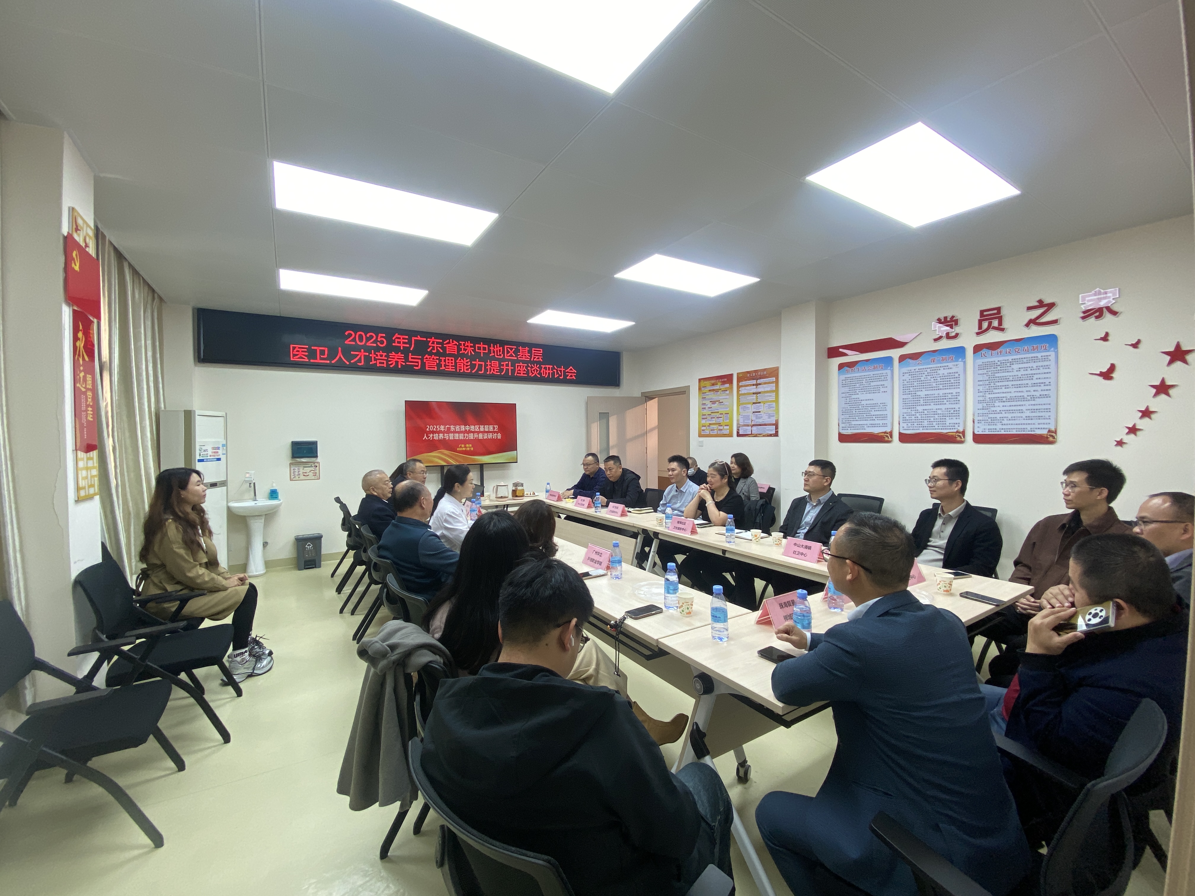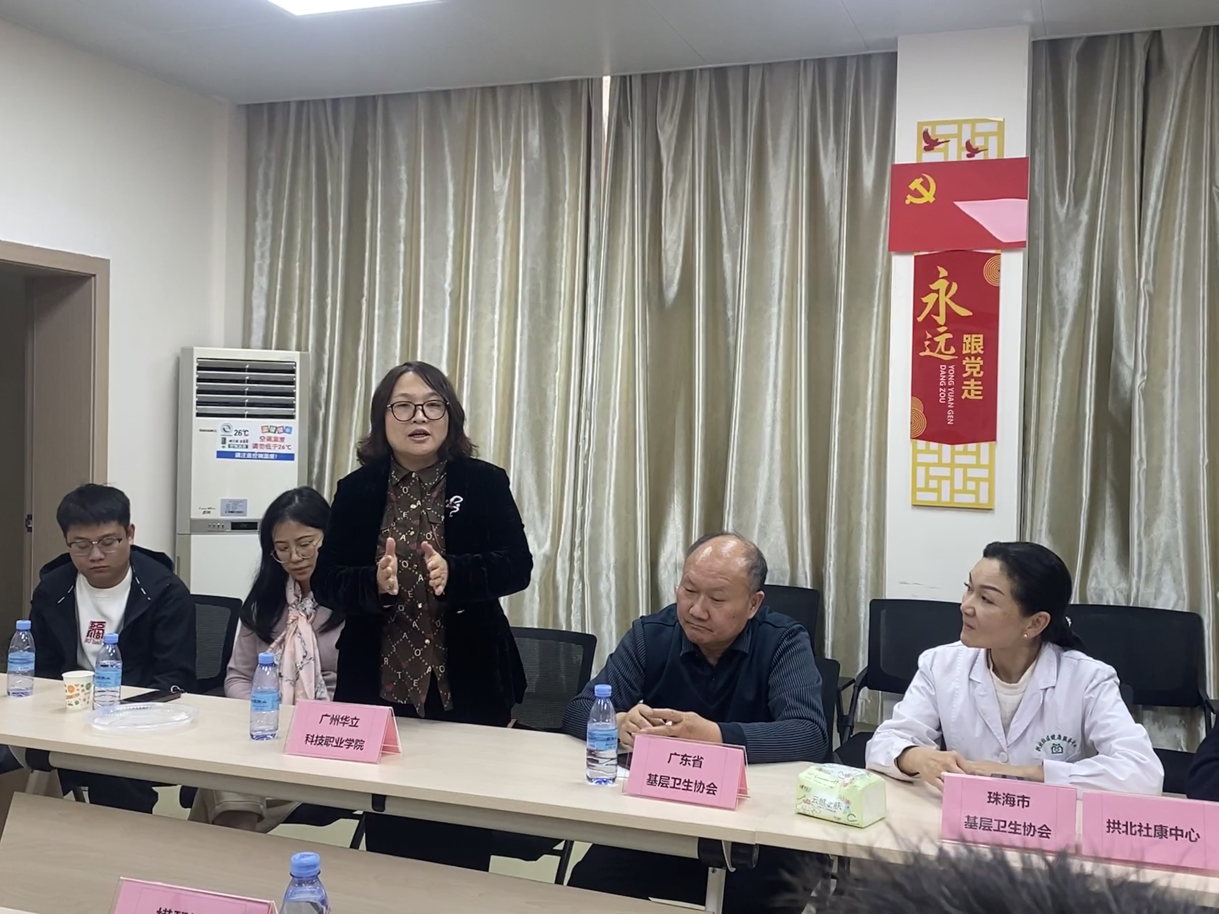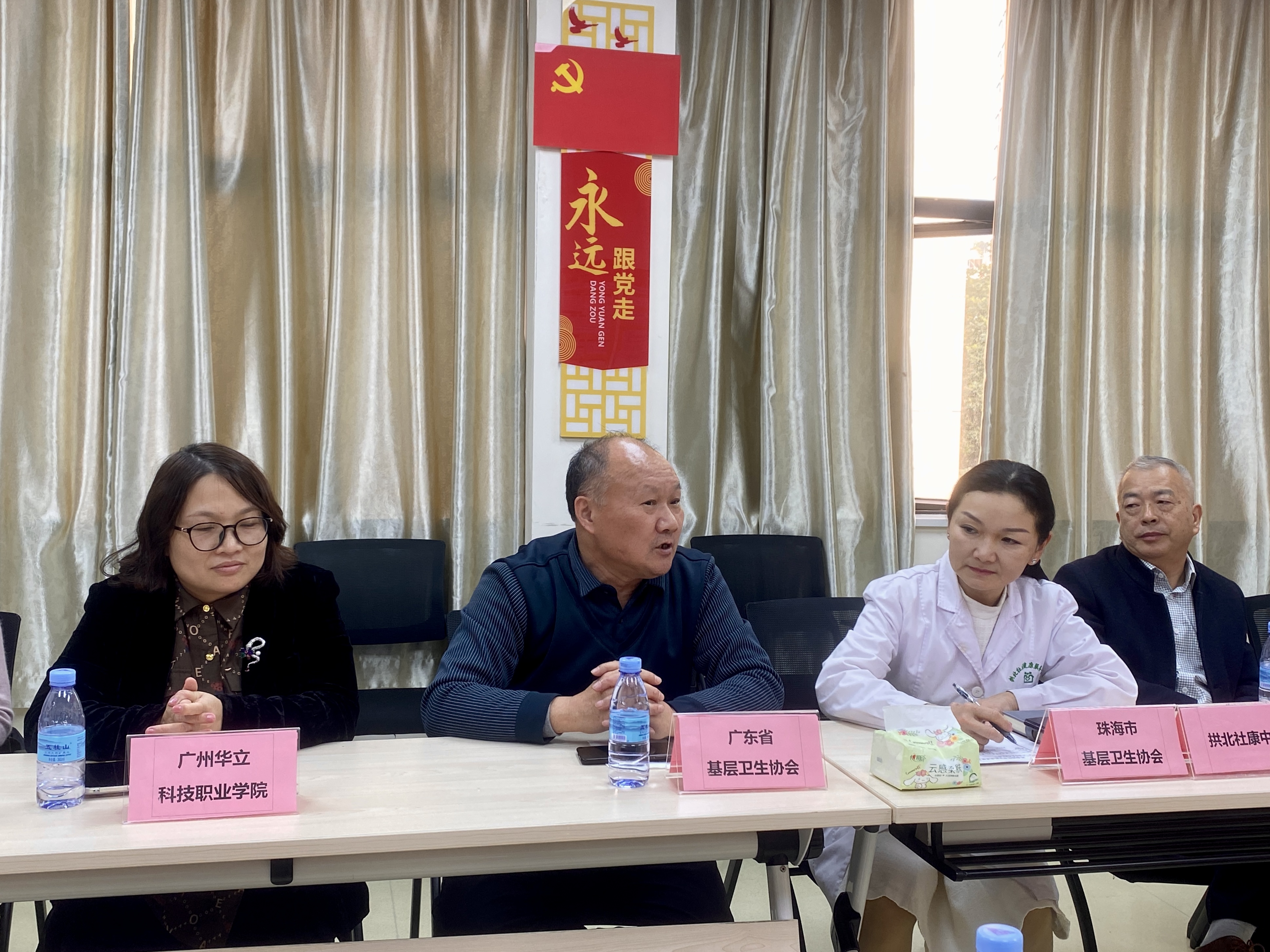 会议在珠海市中西医结合医院拱北社区健康服务中心举办。会议上,广东省基层卫生协会和珠海市基层卫生协会的会长首先对来自珠中地区的9家社卫中心负责人及我校到场人员表示热烈的欢迎。同时提出,为进一步加强广东省珠中地区基层医卫人才的培养与管理,推动地区卫生健康事业的高质量发展,特地举办本次机构与高等职业院校的座谈,旨在让一线的社卫中心医务工作人员对产教融合、学历背景提升、持续进修等多方面起到更深的认识 ,从而全面提升基层医疗工作人员的综合能力。