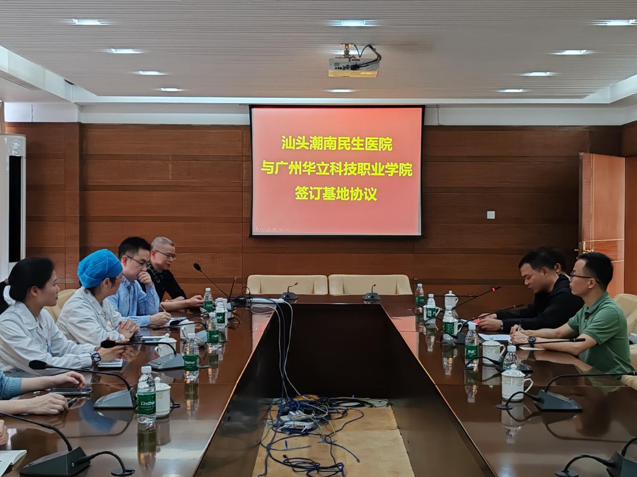 为了深化校企合作,夯实产教融合,强化专业建设。3月3日上午,广州华立科技职业学院健康学院书记副院长刘伟鑫、就业办主任张勇维、学校招生就业处凌志斌等一行人前往汕头市潮南人民医院洽谈校企合作,朱旭新副院长等热情接待,校企双方举行了座谈。
