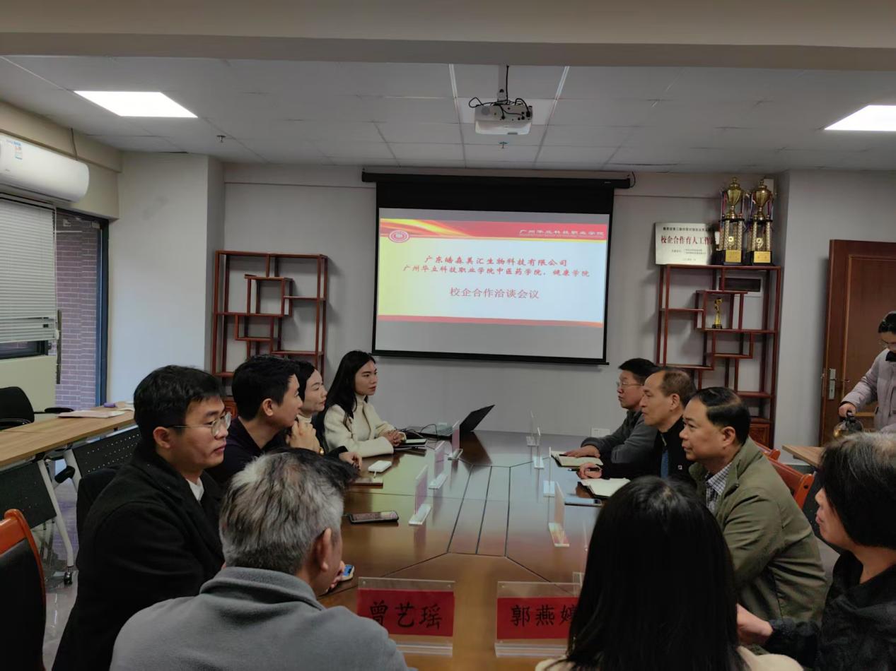 2025年1月7日,广东皓森美汇生物科技有限公司董事长李小燕、总裁刘卓勇、副总裁郭晓晴到校进行校企合作洽谈,我院雷毅雄院长、中医药学院王晖院长、曾祥彪副院长、张志勇副院长及相关专业教师参会。