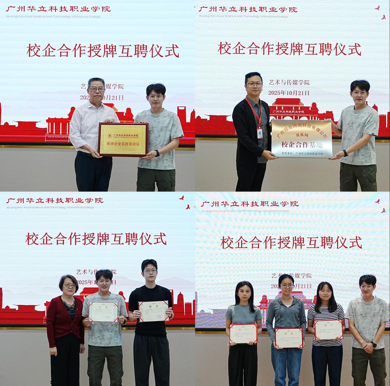 为深化产教融合,拓宽学生就业创业视野,2025年10月21日下午,广州华立科技职业学院艺术与传媒学院与广州冠岳网络科技有限公司在学校图书馆104隆重举行了“数艺世界”校企合作签约授牌互聘仪式暨就业创业经验分享会。本次活动得到了校企双方的高度重视。学校副校长陈显强、教务处处长孙丽英、实践教学科科长韦建林,艺术与传媒学院院长朱君、党总支书记陈改梅等领导老师出席活动。广州冠岳网络科技有限公司谢增福经理、黄龙城项目总监作为企业方代表参会。