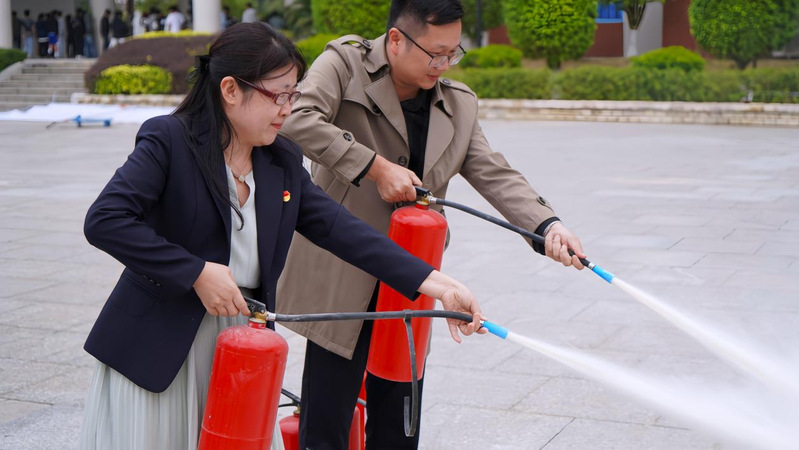保卫处老师进行消防灭火设备的使用讲解与示范