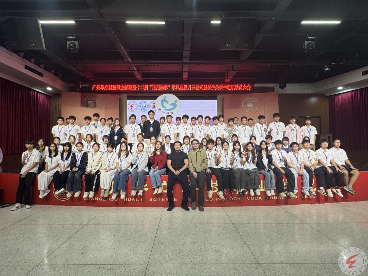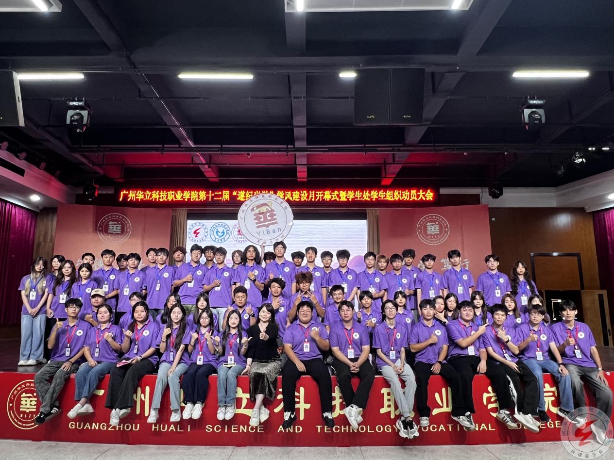 广州华立科技职业学院第十二届“遵纪尚学”学风建设月开幕式暨学生处学生组织动员大会于2025年11月5日在西区图书馆八楼隆重举行。