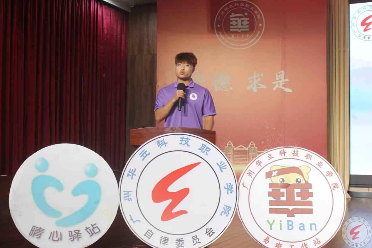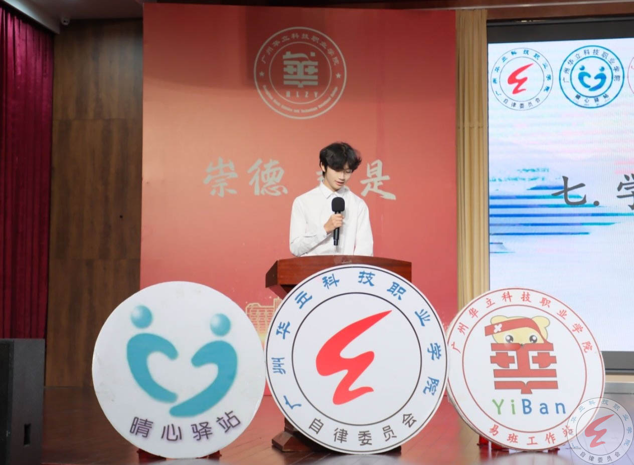 校自律委员会主席团成员温梓华同学作为骨干代表发言,他代表全体学生处学生组织骨干,对学校的培养与信任表示衷心感谢。他紧密围绕“以遵纪铸品格基石,以尚学拓青春视野”的大会主题,阐述了学生骨干在学风建设中的责任与担当。
