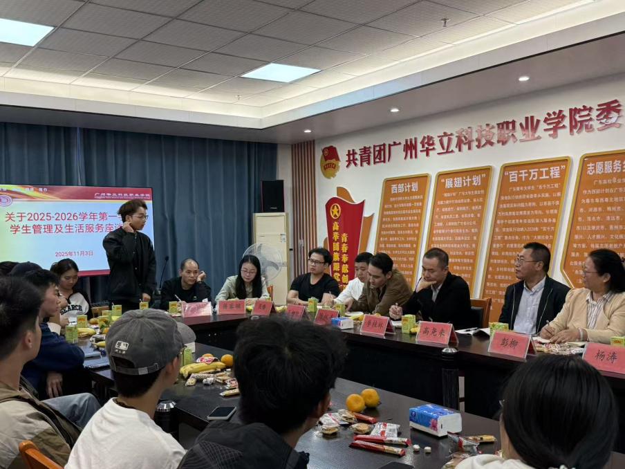 为深入践行“以学生为中心”的办学理念,精准对接学生成长需求,持续优化学生管理模式与校园生活服务质量。我校开展2025-2026学年第一学期学生管理和生活服务座谈会,由学生处、团委、保卫处、总务处、信息中心于2025年11月3日组织各二级学院学生代表到综合楼103开展学生管理和生活服务座谈会,高尧来副校长、学生处李桂林处长、学生处彭柳副处长、团委林静珊副书记、保卫处杨涛老师、心理教育与咨询中心吴臻老师、学校资助中心谭带珍老师、总务处蒋容颖老师、息中心贾伟添老师、易班中心负责人陈雅婵老师、生活指导科吴柳炫老师,学生科陈权丰老师、饶永财老师参与了此次学生管理和生活服务座谈会。