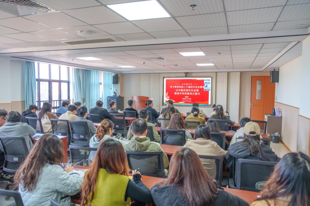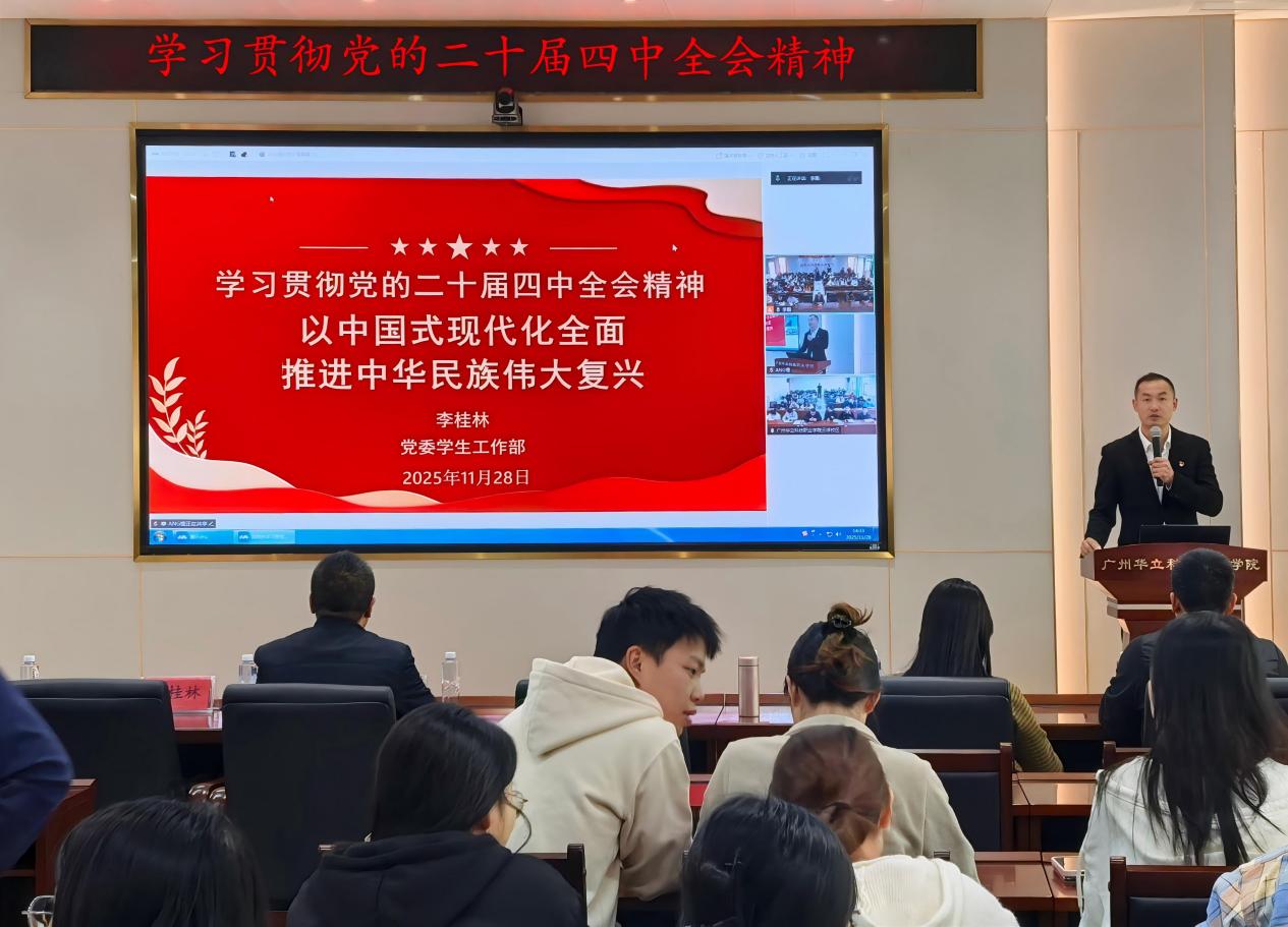 为深入学习贯彻党的二十届四中全会精神,推动学生工作与教育科技人才一体化发展战略同频共振。2025年11月28日,在我校图书馆104报告厅召开学习贯彻党的二十届四中全会精神专题学习会。学校党委副书记、副校长高尧来,党委学生工作部部长李桂林、副部长彭柳、李同同以及两校区学工队伍参加了本次学习会。
