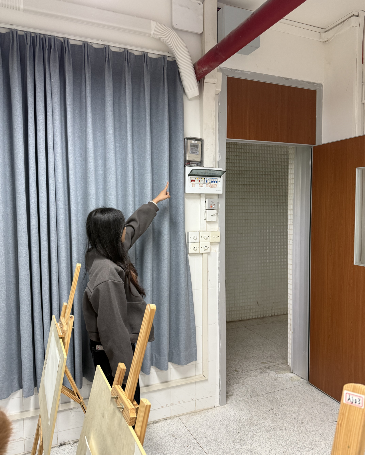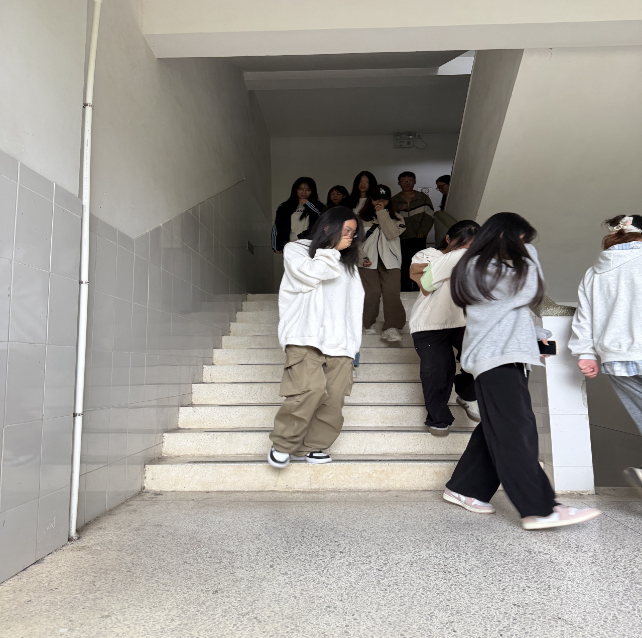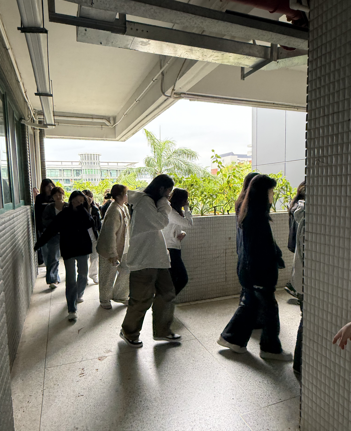 画室内正在进行教学,教学使用的设备比较多,因天气炎热,用电量大,电线设备发生短路了,在旁学生发现电线短路并冒烟,立即通知任课老师,任课老师立即关闭实验室总电源开关,指挥学生保持冷静,有序撤离实验室,并立刻通知学校安全管理人员处理等。整个疏散过程有条不紊,仅用了短短几分钟便全部完成,体现了师生们对演练流程的熟悉和良好的应急反应能力。