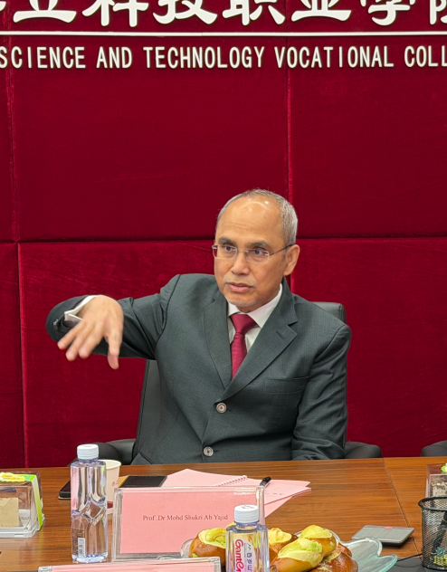 MSU校长和创始人Prof .Dr Mohd Shukri Ab Yajid表示对华立职院的热情接待表示感谢,介绍了MSU的整体情况,并表达了加强两校交流合作的意愿,希望两校优势互补,促进高质量教学发展。随后PECSB马来西亚优创顾问有限公司主席Norhawaty binti Mansor表示基于前期的合作,并以此次交流为契机,进一步推动校际沟通,建立长期稳定的合作关系。