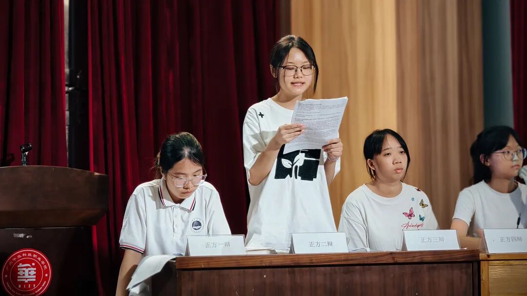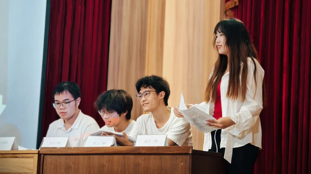 辩论赛场,"声动华夏·辩响未来"的思辨之火点燃了整个夜晚。围绕“‘梗文化’是否促进语言的规范发展”这个议题,辩手们妙语连珠,观点交锋,为我们呈现了一场思想盛宴。语言的魅力在辩论中绽放,思维的火花在交流中碰撞。