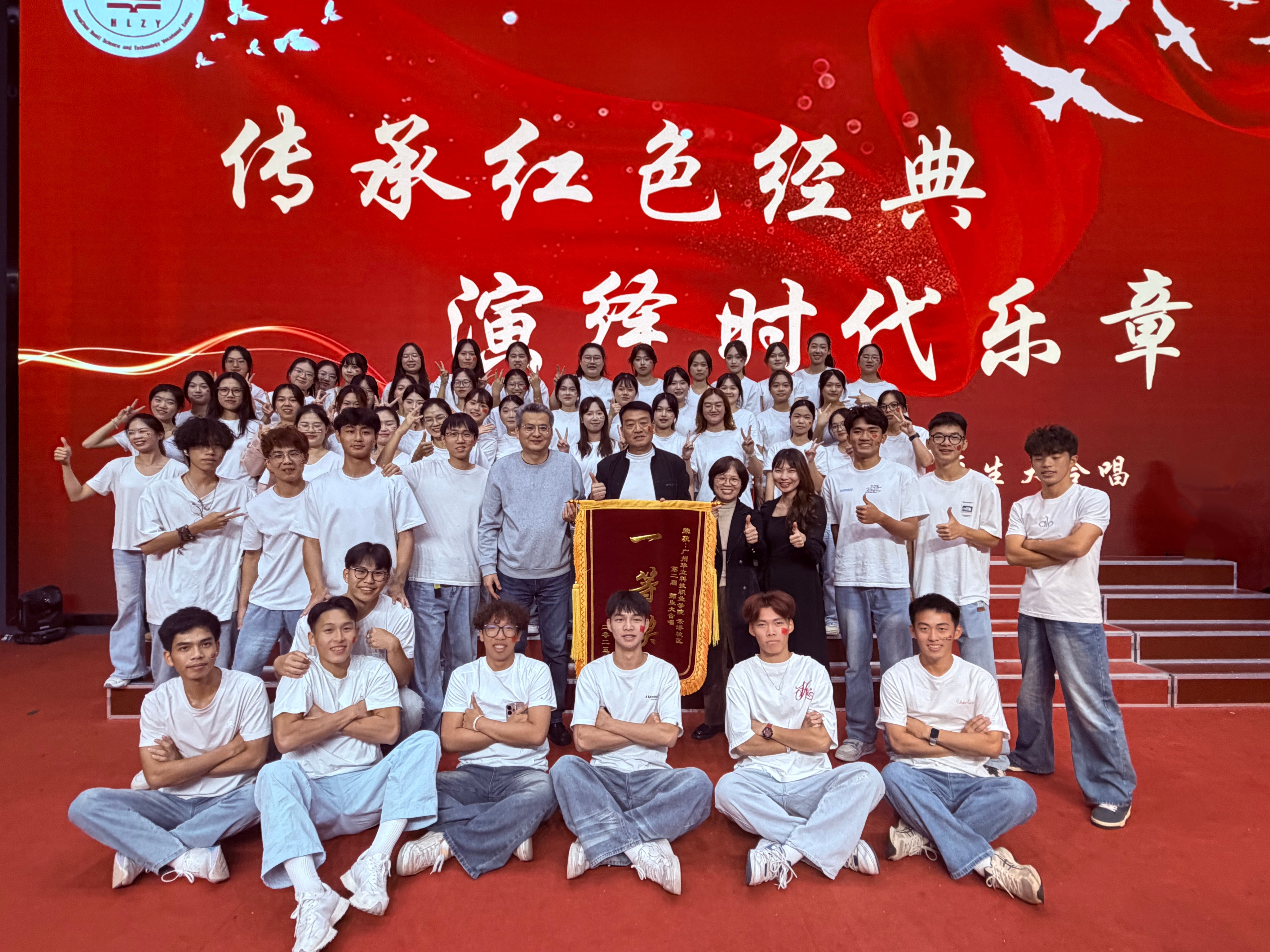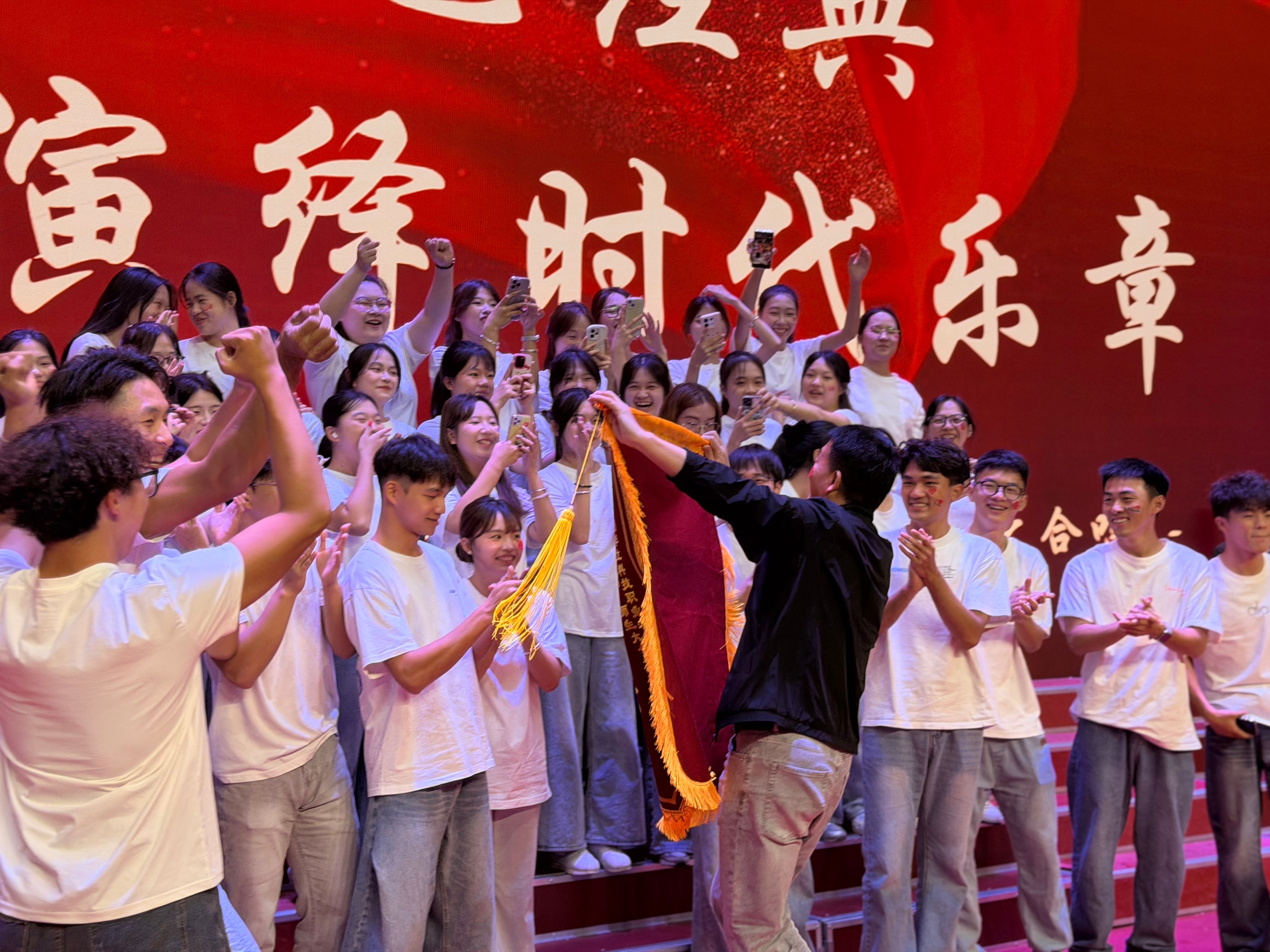 红歌蕴含强大精神力量,以之播种可滋养心灵。今夜教育学院师生在云浮校区激情开唱,用歌声展现时代风采,最终斩获一等奖,收获荣耀与心灵成长。