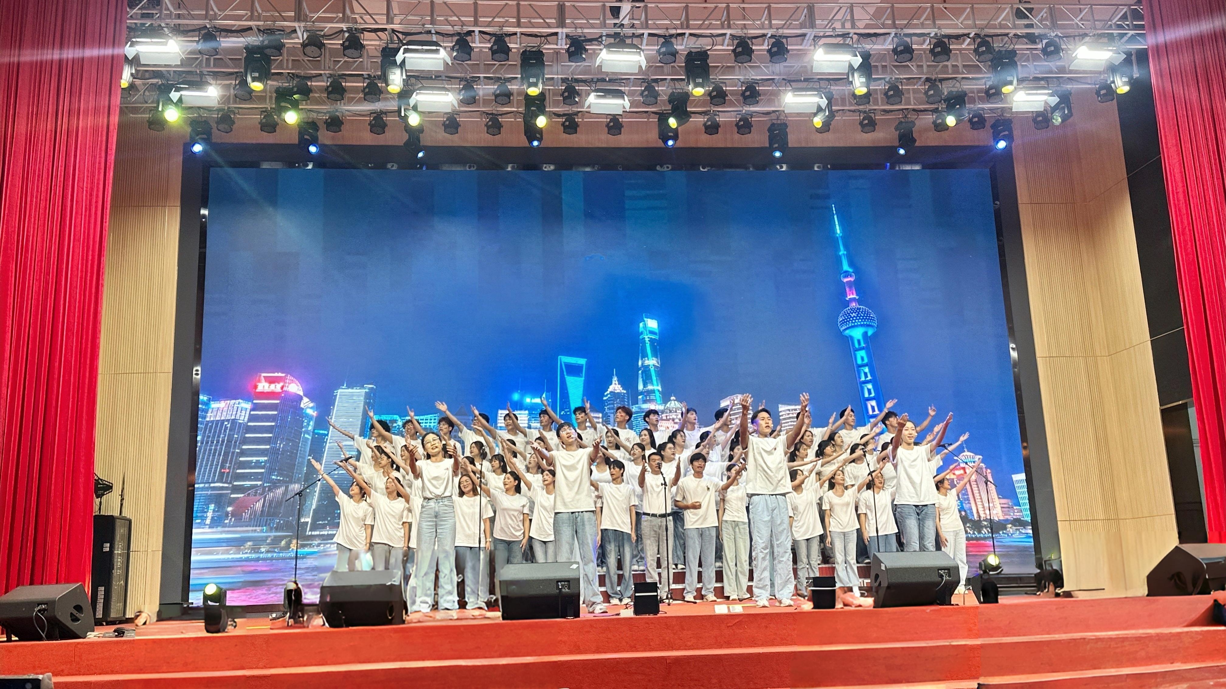 选定《大中国》与《像你这样的朋友》两首曲目,教育学院意在用歌声传递家国情怀与深厚情谊。《大中国》的演唱磅礴大气,师生们用昂扬的歌声唱出了对祖国辽阔山河的赞美与深情;而《像你这样的朋友》则温馨动人,展现了教育学院大家庭团结友爱、携手共进的深厚情谊。舞台上,师生们精神饱满,即便是身体欠佳的老师也以最佳状态投入演出,歌声时而铿锵有力,时而婉转深情,辅以恰到好处的舞台表现,赢得了现场评委和观众的热烈掌声。