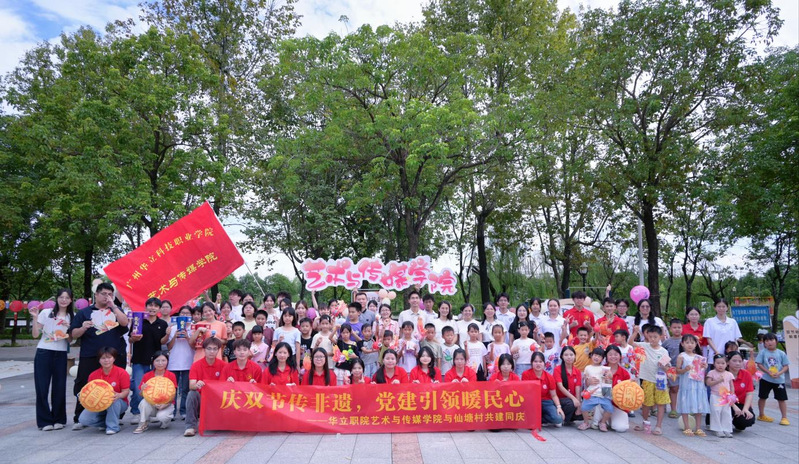 秋风送爽,丹桂飘香。中秋国庆双节将至,9 月 27 日,广州华立科技职业学院艺术与传媒学院“纸韵繁华 守护非遗突击队”联合石滩镇仙塘村村委、仙塘村党支部、广州市日辉农业发展有限公司、广州市特耐得车轴有限公司党组织共同开展“党建引领聚合力,非遗游园润民心”双节系列活动,通过“上午慰问传温情、下午游园育童心”的创新形式,将党建关怀、企业担当与高校文化传承深度融合,用民生微实事点亮村民幸福生活。