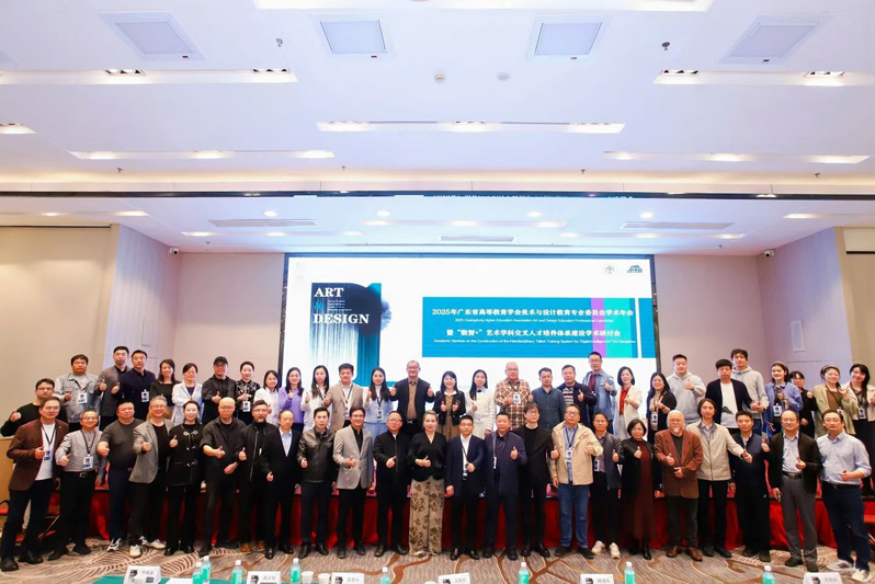 2025年12月19日至20日,广东省高等教育学会美术与设计教育专业委员会学术年会暨“数智+艺术学科交叉人才培养体系建设”高峰论坛在广东外语外贸大学成功举办。我校艺术与传媒学院陈改梅、马英超、邢雅丹、陈茜四位教师受邀参会,与来自全省70余所高校的近200名专家学者及行业代表共聚一堂,共话人工智能与数字经济时代艺术教育的变革与未来。