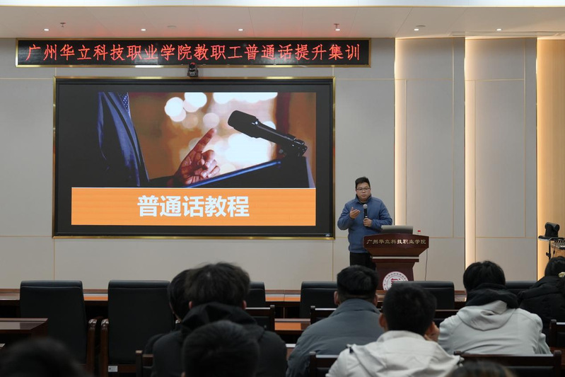 为提升教职工普通话应用水平,强化教育教学语言规范,近日,广州华立科技职业学院开展教职工普通话提升集训。学校人事处处长钟文浩、艺术与传媒学院院长朱君到场参会,全校各部门教职工积极参训。