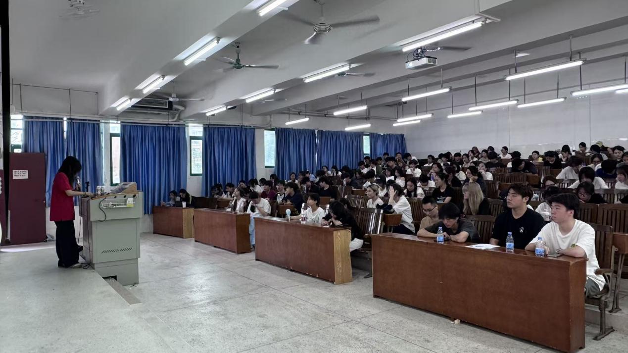 为深入推进新生入学教育,引导2025级新生坚定理想信念,9月22日,在图书馆401教室开展党史专题宣讲活动。艺术与传媒学院党总支专职副书记刘嘉怡主讲,全体大一新生参加。