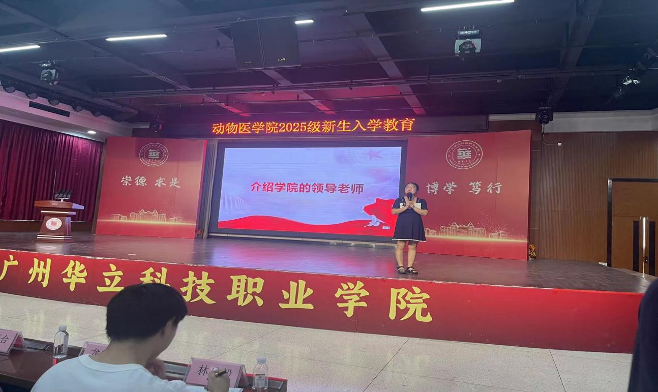 金秋送爽,丹桂飘香。2025年9月5日,广州华立科技职业学院动物医学院2025级新生见面会暨入学教育在图书馆8楼隆重举行。学院院长陶正平教授、学管主任胡彩霞、各系所负责人、学院全体教师以及全体2025级新生齐聚一堂,共同迎接新征程的开启。会议由学院学管主任胡彩霞主持。