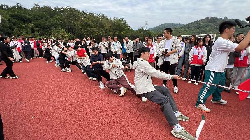 比赛现场气氛热烈非凡,教师们各个精神抖擞,摩拳擦掌。旁边的学生们也都热情高涨,纷纷为老师们加油助威,呐喊声此起彼伏。这场教师拔河比赛不仅增进了教师之间的交流与合作,也为校运会增添了一抹别样的色彩。