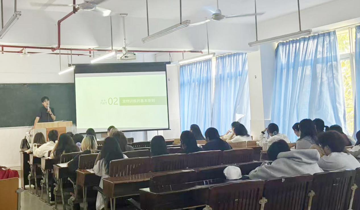 本次公开课在西一411教室举行,由乔东鹏教师主讲,授课课程为《宠物驯导技术》。课堂上,乔东鹏教师围绕“宠物训练的基本原则”展开教学,教学程序得当,展现出一定的教学组织能力和课堂掌控水平。听课过程中,校领导及随行人员专注听讲、认真记录,围绕课堂教学节奏、师生互动情况及学生学习状态进行全程观察,深入了解一线教学实际成效。