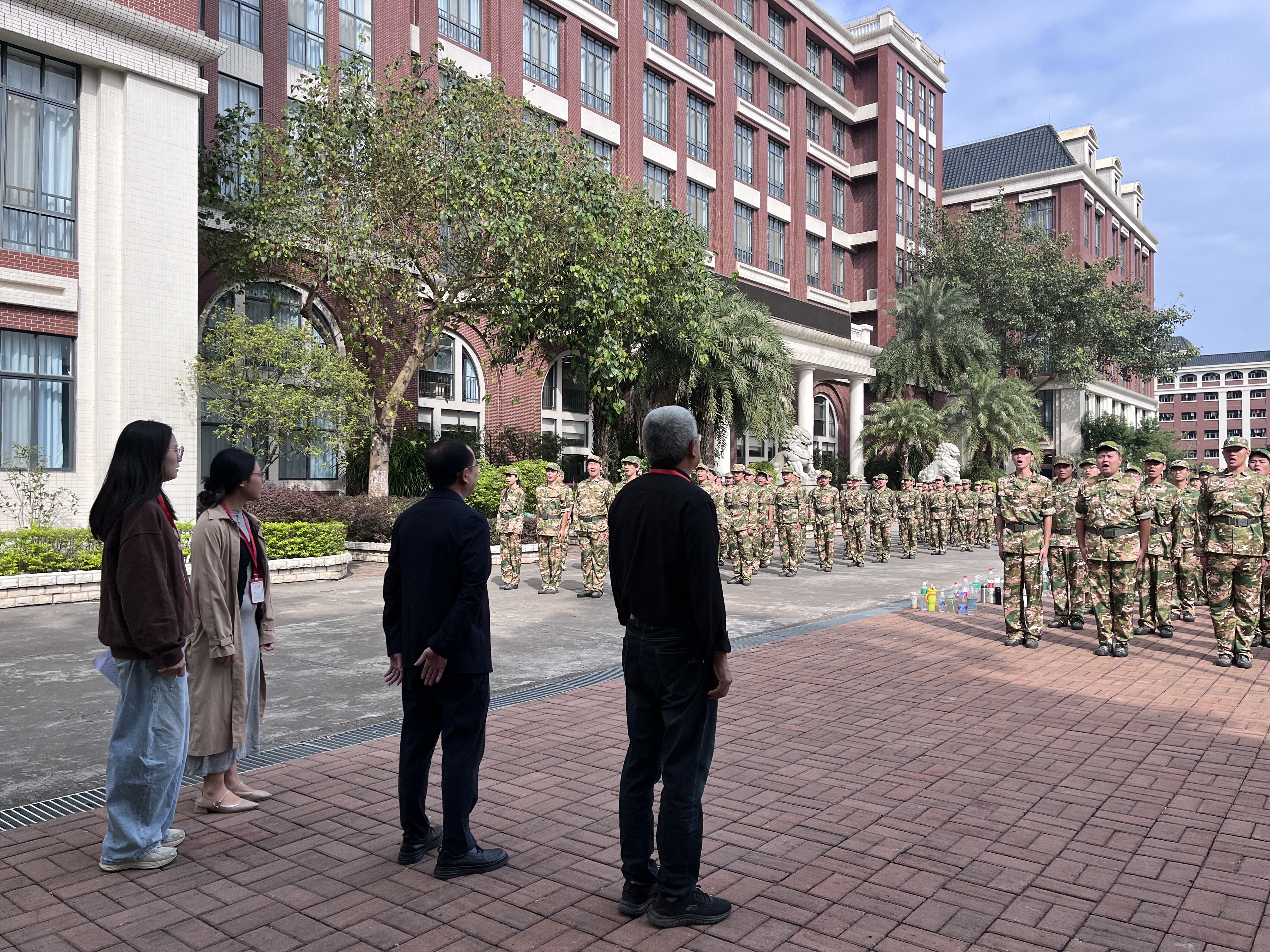 期间,徐耀鉴院长与承训教官亲切交谈,详细询问军训计划安排、训练强度及学生适应情况,对教官们严格规范的训练和耐心细致的指导表示感谢。他叮嘱教官在保证训练质量的同时,关注学生身体状况,科学调整训练节奏,确保军训安全有序开展。