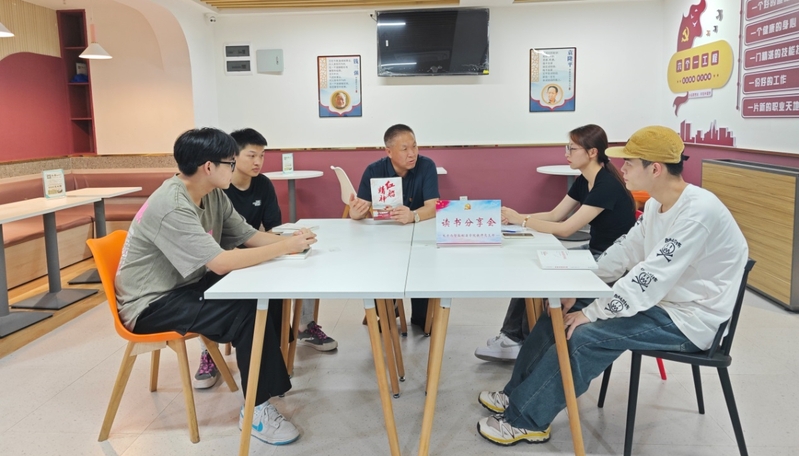 作为电力与智能制造学院的党总支书记、院长褚玉峰,3月25日走进学校一站式学生社区的书吧,组织同学们进行读书分享。