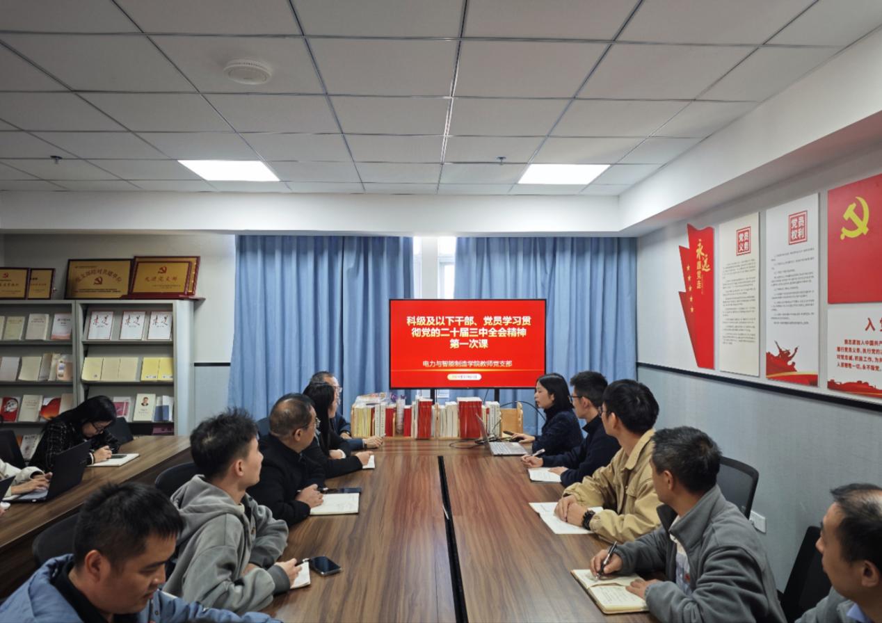 按照学校党委的《科级及以下干部、党员学习贯彻的二十届三中全会精神》安排部署,2024年12月2日下午,教师党支部在西1-514会议室,组织开展了科级及以下干部、党员学习贯彻党的二十届三中全会精神第一课——深入学习贯彻习近平总书记关于全面深化改革的一系列新思想、新观点、新论断和党的二十届三中全会精神。