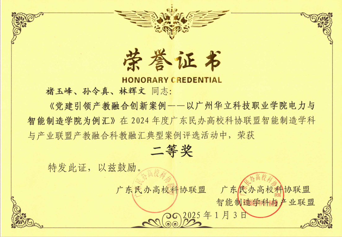 会上,公布了广东民办高校科协联盟智能制造学科与产业联盟 2024年产教融合创新案例获奖名单,我院的“党建引领产教融合创新案例”获得二等奖。