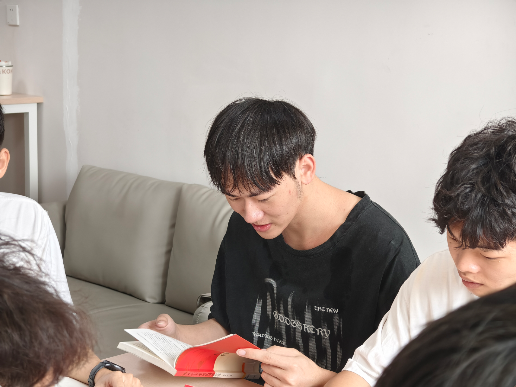 窗外雨声淅沥,室内书香氤氲。在学生社区里一场别开生面的读书分享会正火热进行教师党员吴世涛带领着五位学生党员和积极分子,共同徜徉于知识与信仰的海洋,其中,他作为思想引领者的角色尤为亮眼。