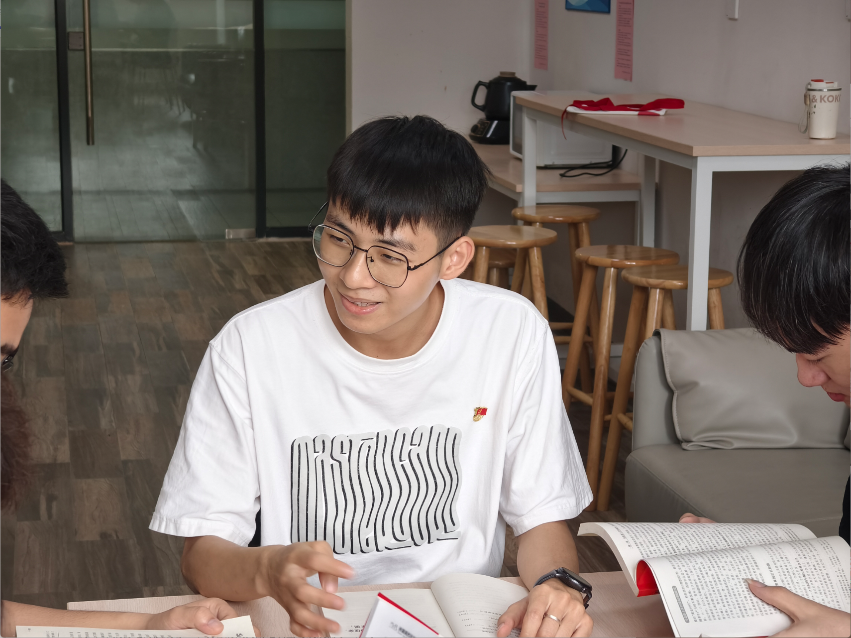 谢威谈及《当代中国发展史》中改革开放的波澜壮阔时,吴老师引导大家思考发展背后的制度力量和领导核心;当大一新生杨岱升认真解读《党的基本知识》后,吴老师热情鼓励其持续学习、积极向组织靠拢;在谢凯帆探讨《20世纪末国外马克思主义纲要》中世界社会主义思潮的演变后,吴老师适时引导大家辩证分析中国化马克思主义的生命力,理解我们自身道路的独特价值和必然选择。这种贯穿全程的、互动式的思想点拨,让每一本书的分享都不仅限于知识传递,更成为了党育人过程的直观体现。