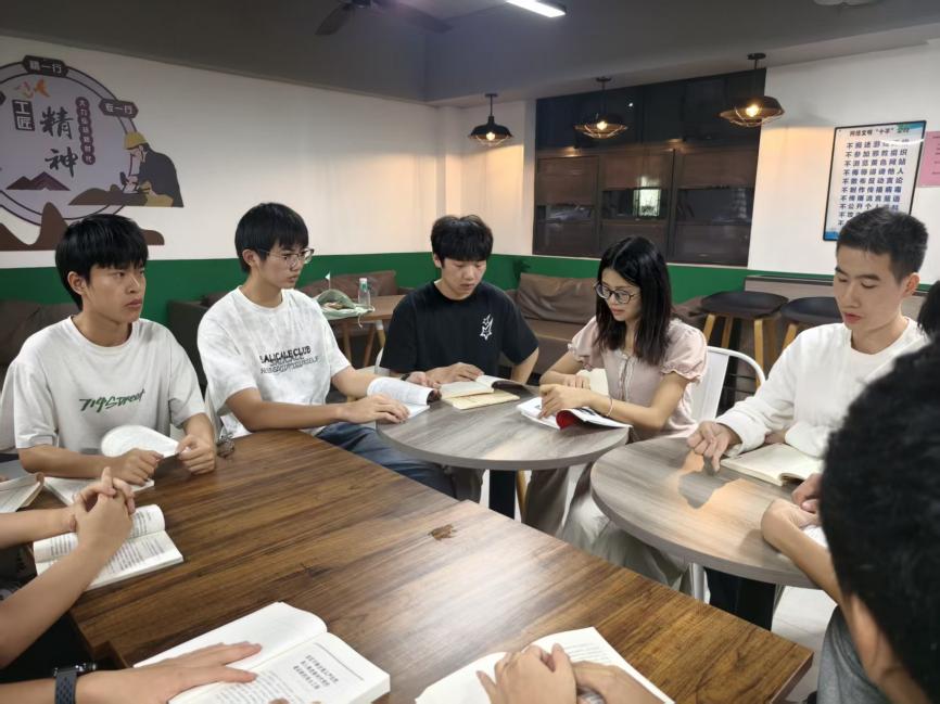 2025年11月06日晚,党员罗炽老师在G2楼的“一站式”学生社区组织开展“读书分享”,引领学生在红色经典中汲取奋进的力量。