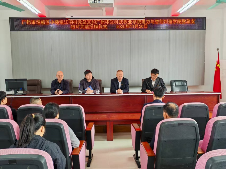 为推动高校智力资源与乡村发展需求精准对接,探索党建赋能乡村振兴新路径。11月20日,电力与智能制造学院与广州市增城区小楼镇江坳村,在江坳村村委会举行党总支共建授牌仪式,开启校村结对共建新篇章。