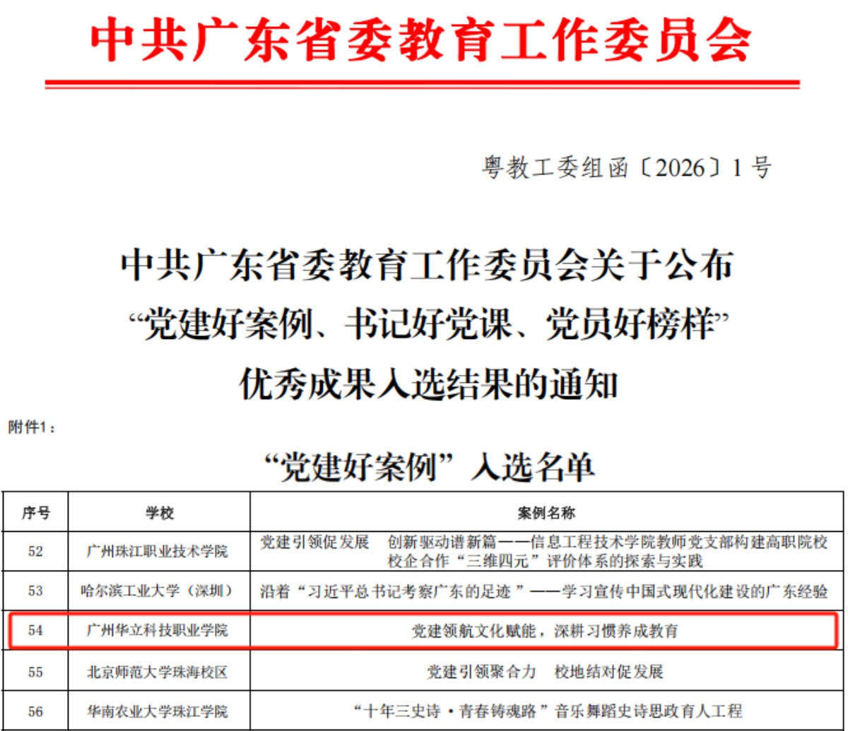 1月15日,中共广东省委教育工作委员会公布“党建好案例、书记好党课、党员好榜样”优秀成果入选结果。电力与智能制造学院党总支书记褚玉峰同志申报的《党建领航文化赋能,深耕习惯养成教育》案例,成功入选“党建好案例”名单。
