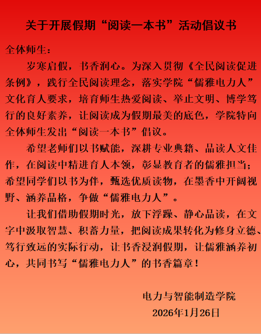 1月26日,临近放假,电力与智能制造学院在西1-514会议室举行“假期阅读一本书”活动启动仪式,学院广州校区的全体教师参加了会议,云浮校区的教师通过连线方式也参加了会议。