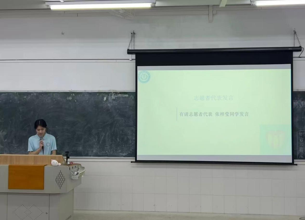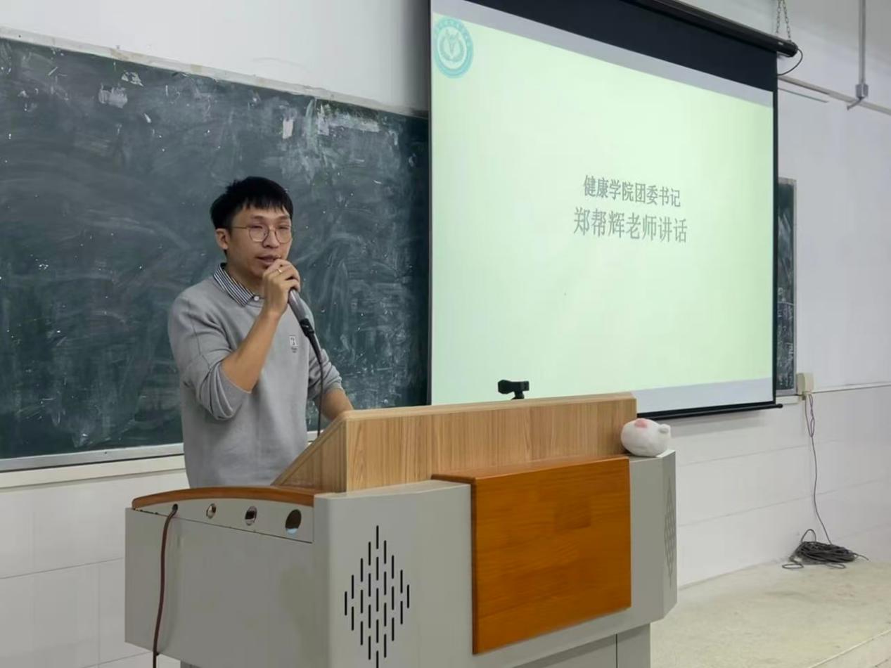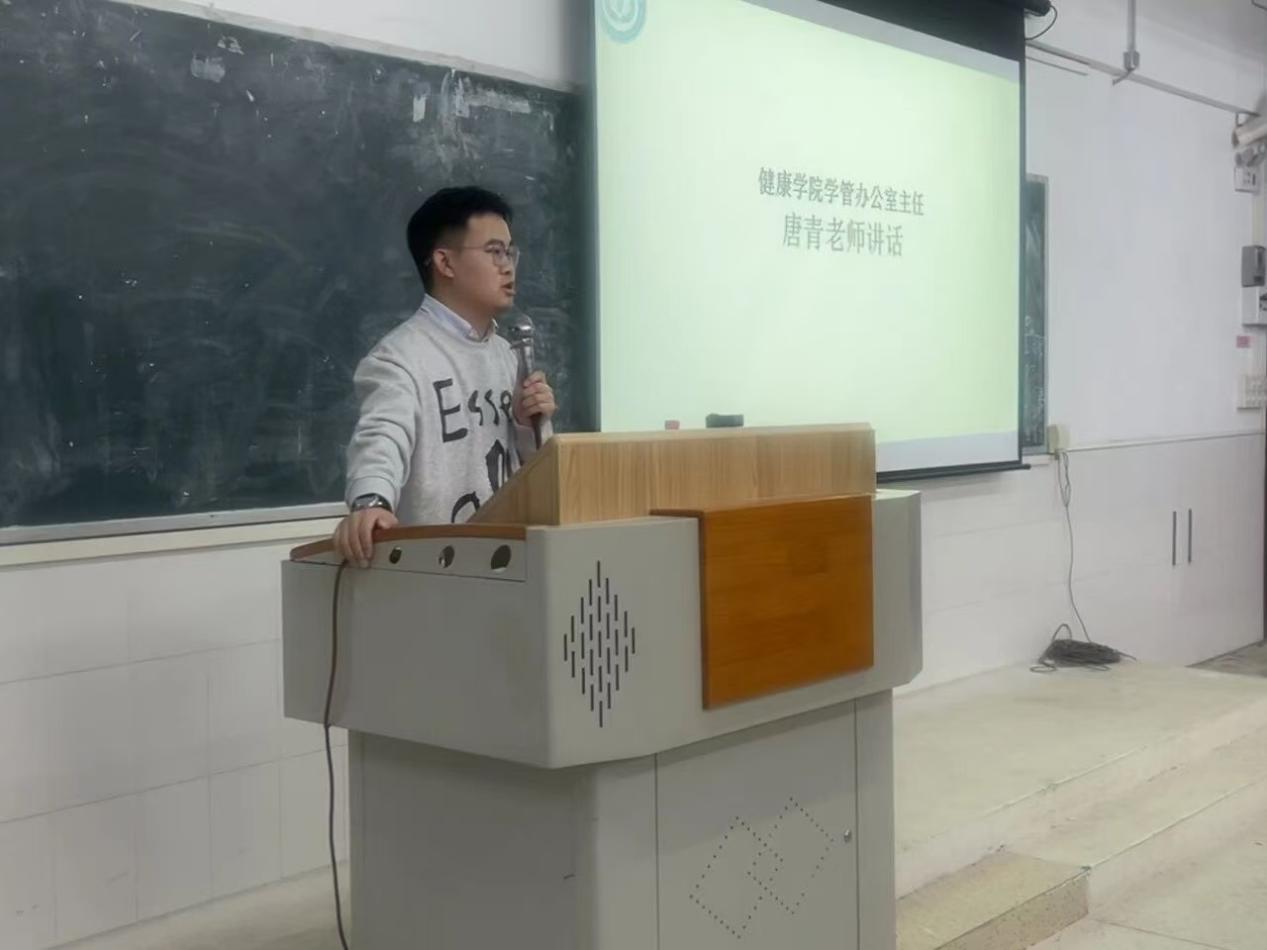 健康学院团委书记郑帮辉老师强调了运动会凝聚力量、展现青春风采的意义,叮嘱运动员安全文明参赛、奋勇拼搏,要求志愿者履职尽责。健康学院学管办公室副主任唐青老师指出,校运会既是身体素质的检验舞台,也是凝聚学院力量、彰显学子风采的契机,契合“健康育人、全面发展”理念,能助力学子锤炼意志、增进情谊,号召全体师生携手办好运动会、为学院争光,并送上美好祝愿。