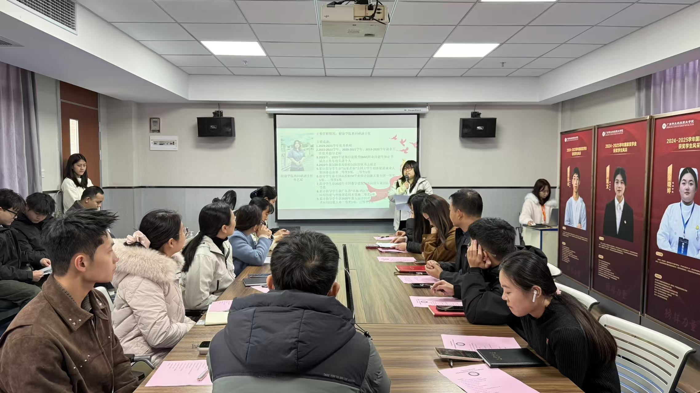 2025年12月26日,广东华立科技职业学院健康学院直属党支部在西二六楼会议室召开2025年下半年发展对象转预备党员支部大会。会议氛围庄严而热烈,旨在进一步加强基层党组织建设,增强党支部的凝聚力和战斗力。