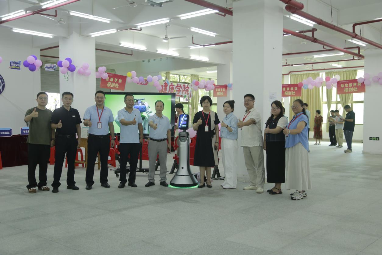 今年学院以科技点亮迎新季,首次启用智能机器人全程助阵。在参观机器人展示区时,校领导对学院创新迎新形式、强化科技体验的做法给予高度评价。