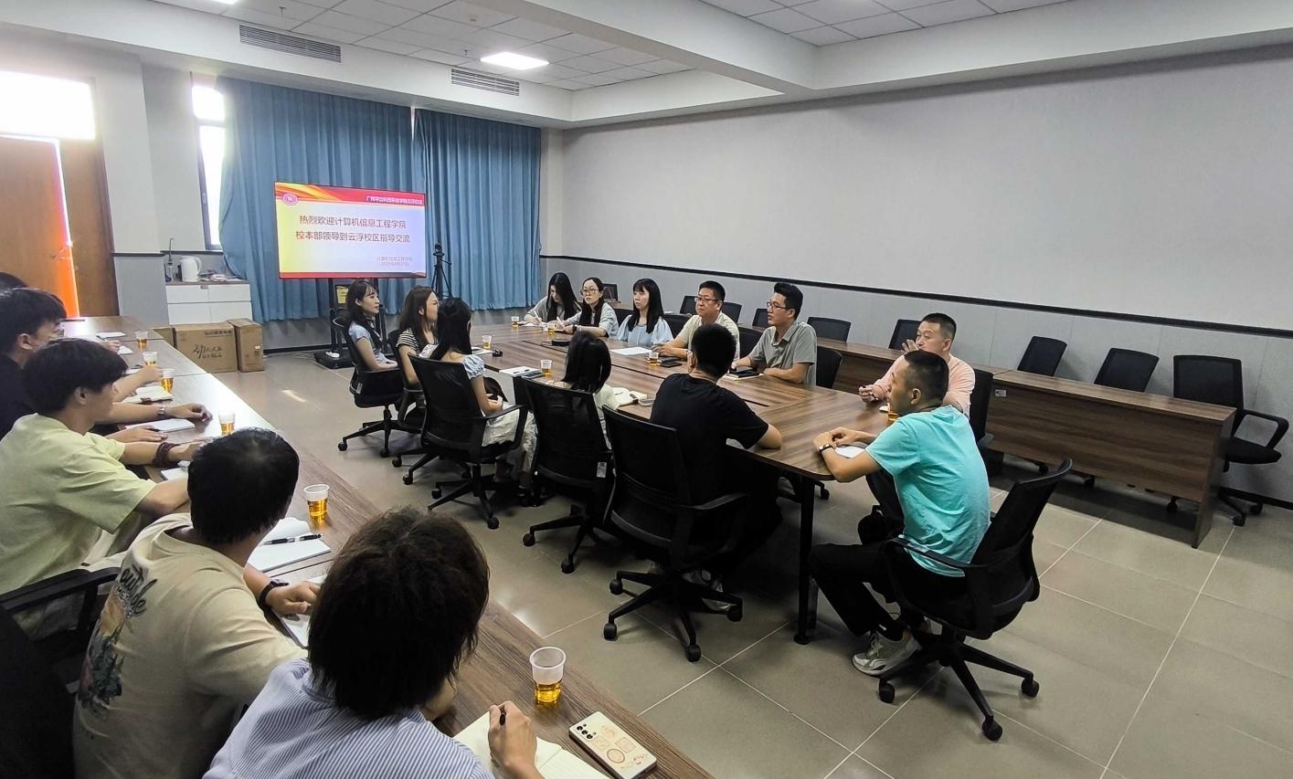 为深入贯彻落实新学年学院重点工作部署,进一步加强两校区之间的协同配合,2025年8月27日,计算机信息工程学院党总支书记、副院长宋海泉带队前往云浮校区计算机学院开展交流指导活动。两校区相关负责人及教师代表参加本次会议,围绕新学期重点任务进行深入研讨和统一部署。