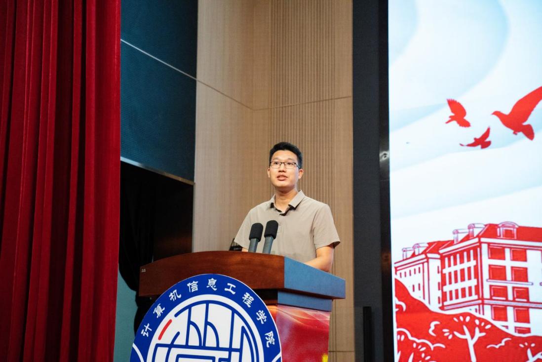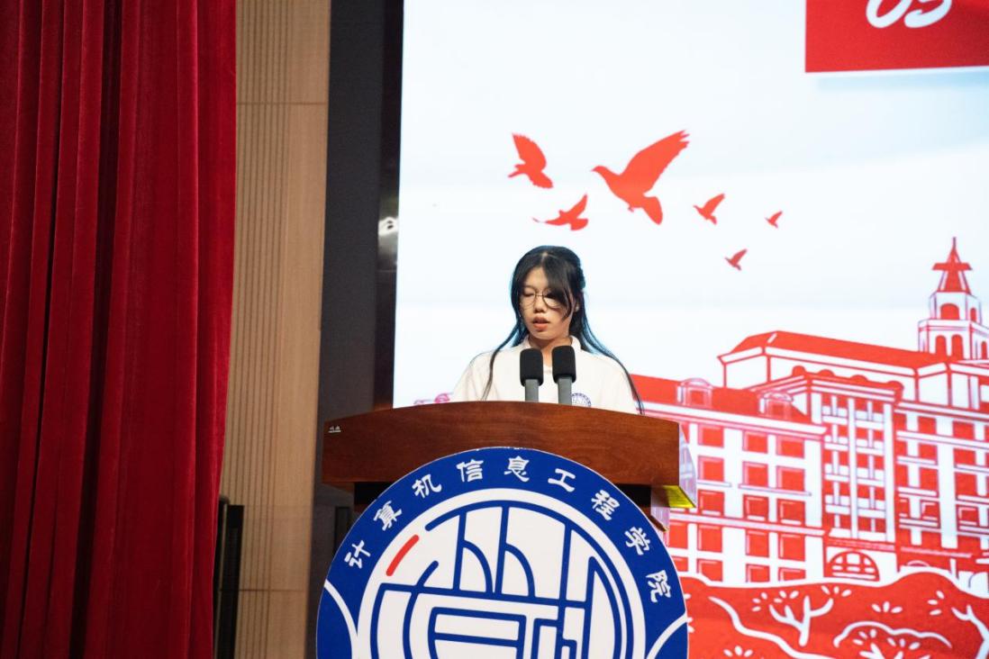 主席团代表郑烨曼同学对新成员的加入表示热烈欢迎,鼓励大家珍惜机会、勇于探索,同时感谢老成员的辛勤付出。她引用“长风破浪会有时,直挂云帆济沧海”,号召全体成员携手共进,共创计算机信息工程学院更加灿烂的明天。