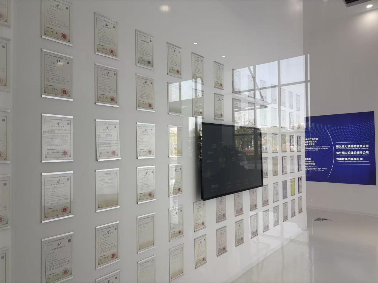 交流伊始,学院领导参观了企业展厅,现场直观了解到华勤技术的技术实力:展厅墙面陈列的满墙专利证书,是企业在智能硬件研发领域技术积累的直观体现。